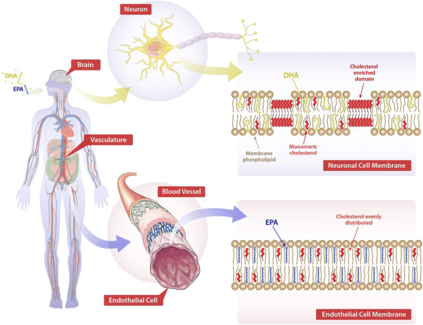 Quanto mais fluida a membrana, melhor a comunicação entre as células nervosas — e o DHA é justamente o ácido graxo que oferece essa fluidez.